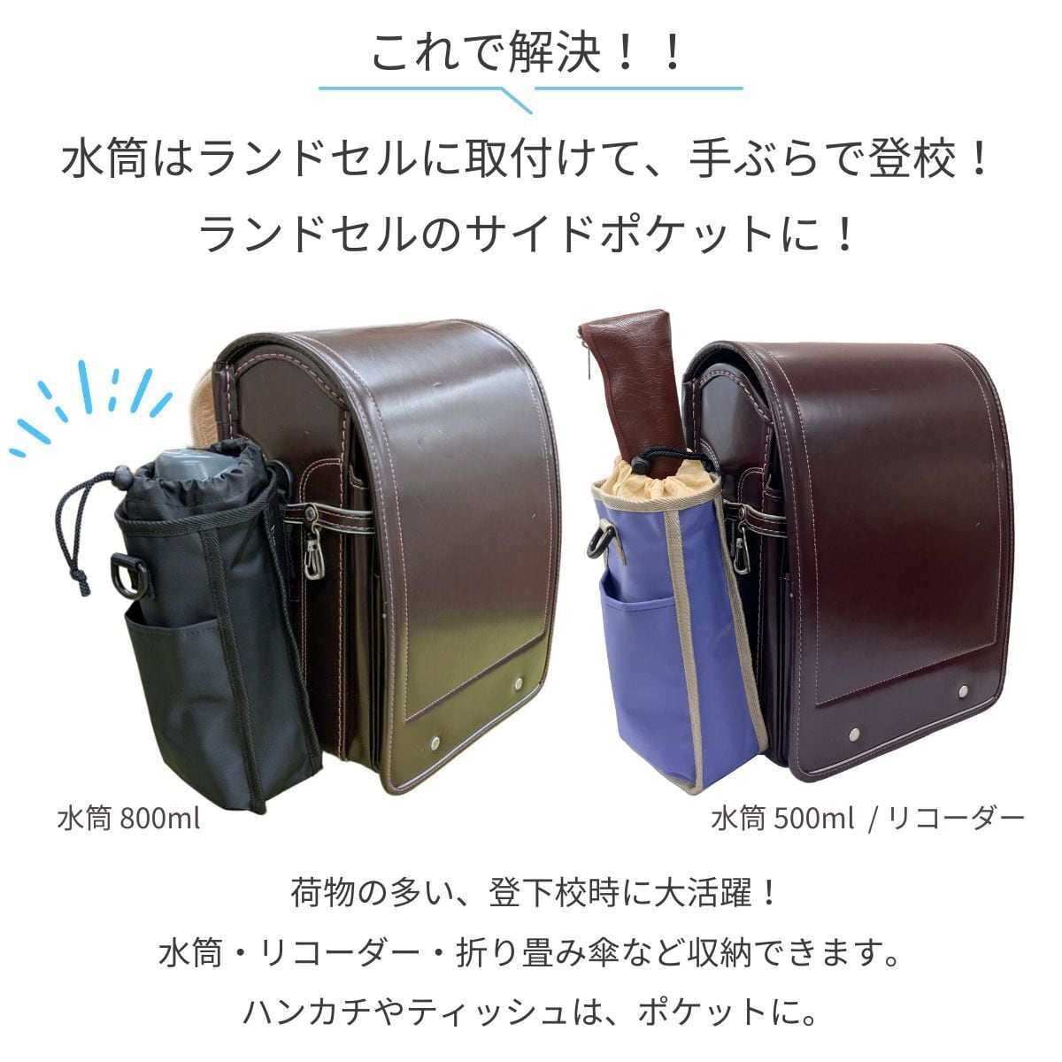 水筒のほかにも、リコーダーや折り畳み傘などをいれて、ランドセルに取り付け可能。