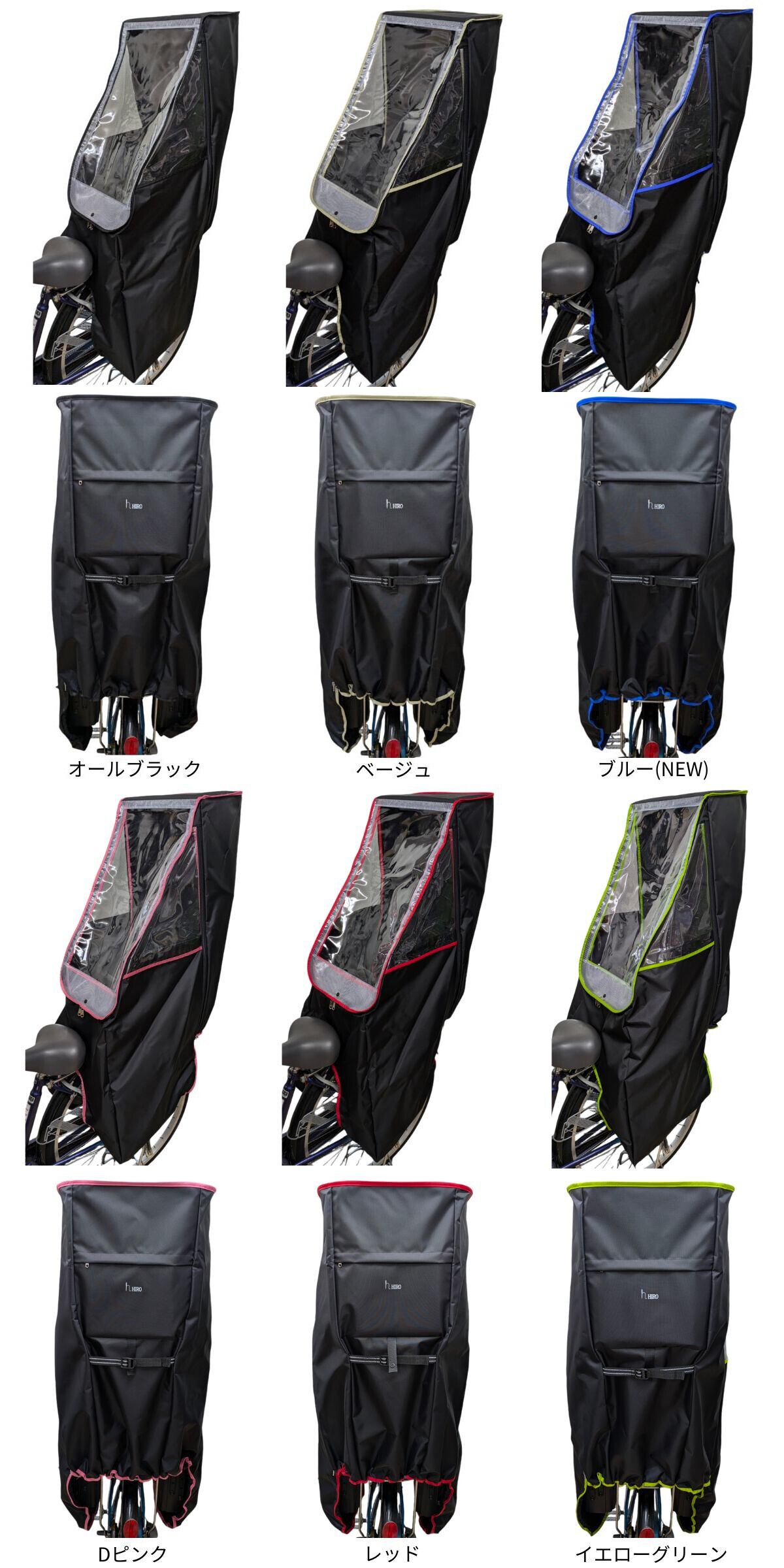 自転車 子供乗せ チャイルドシート レイン カバー 後ろ用 厚みのある強撥水(防水)生地 簡単取り付け フチカラー×ブラックベース 日本製 HIRO (ヒロ)